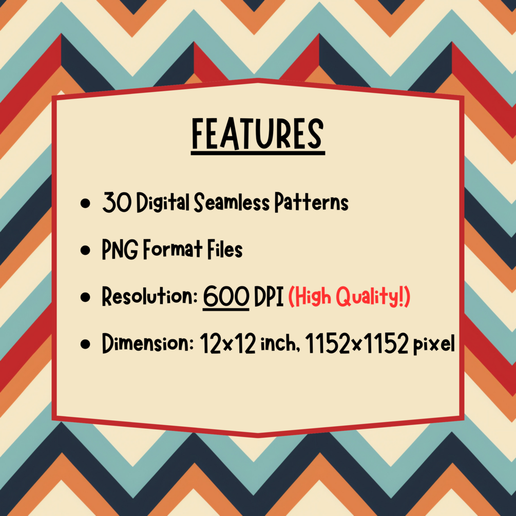 1. 30 Digital Seamless Patterns (Instant download: 3 ZIP format files)